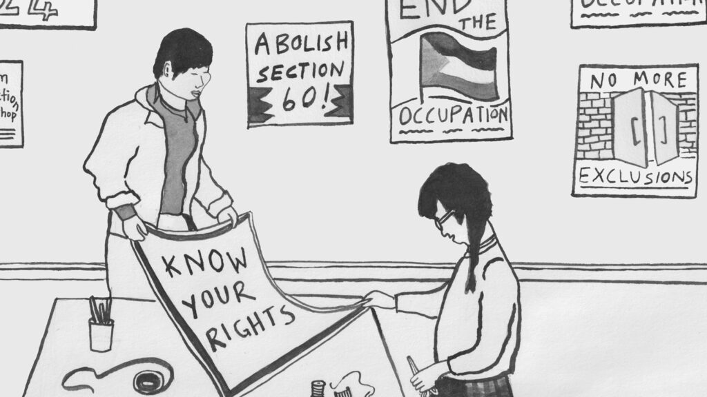 This work is taking place at a time when many people are navigating complex and often impenetrable legal systems alone, compounded by a 99% cut to legal welfare in 2012, and the consequences everywhere. Young people are imprisoned without trial for taking direct action against weapons manufacturers, while others remain held under the long-abolished Imprisonment for Public Protection sentences. UK prisons expand as education within them is cut, and stop and search powers continue to disproportionately target and criminalise racialised communities. In 2023/24 there was a 21% increase in school suspensions that reached more than 950,000 and permanent exclusions rose by 16% over the same period. Trans people have seen their legal recognition and access to services threatened and hostile migration policies continue to separate families through detention and deportation. The same state that fails people here shows no greater accountability globally: despite the International Court of Justice finding a plausible case of genocide in Gaza, the UK continues to export arms to Israel. As the Home Secretary proposes restricting the role of juries – limiting public participation in the legal system – 23 of the 24 members of Palestine Action’s Filton 24 were granted bail by a jury, an example of the necessity for collective participation within our legal systems.